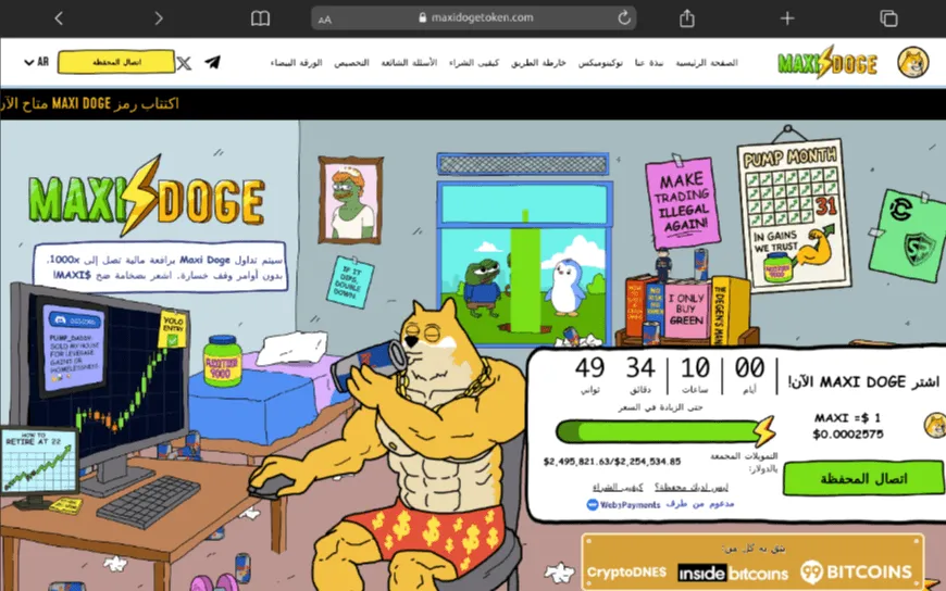 2. Maxi Doge (MAXI): عملة ميم تمثل أسلوب حياة بين عشاق المخاطرة في تداول العملات الرقمية