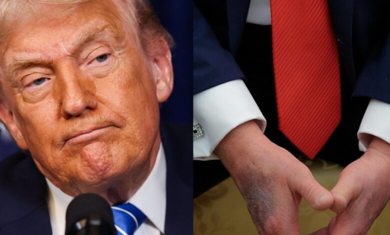 ترامب يوضح سبب الكدمات على يده وينفي شائعات النوم في الاجتماعات العامة
