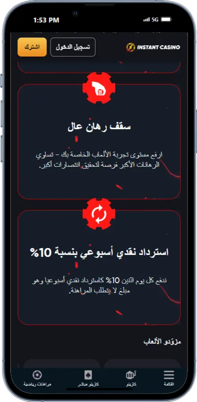 استكشف مكافآت كازينو رائعة، بما في ذلك مكافأة الترحيب السخية، ومكافآت الإيداع المجانية، والعروض الترويجية الدورية للاعبين العرب.