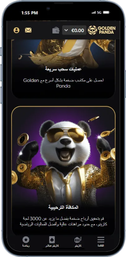 Golden Panda هي منصة كازينو مرخصة من هيئة MGA وتجمع بين عرض ترحيبي فخم ومكافآت بأسلوب رهان معتدل، مما يجعلها خيارًا اقتصاديا للاعبين العرب.