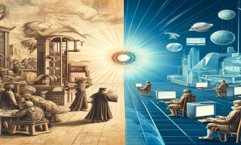 ويشير موكير إلى أن الذكاء الاصطناعي قد يُحدث ثورة جديدة في تفاعل المعرفة النظرية مع التطبيقية، فيسرّع وتيرة الابتكار ويخلق موجة جديدة من الازدهار العالمي.